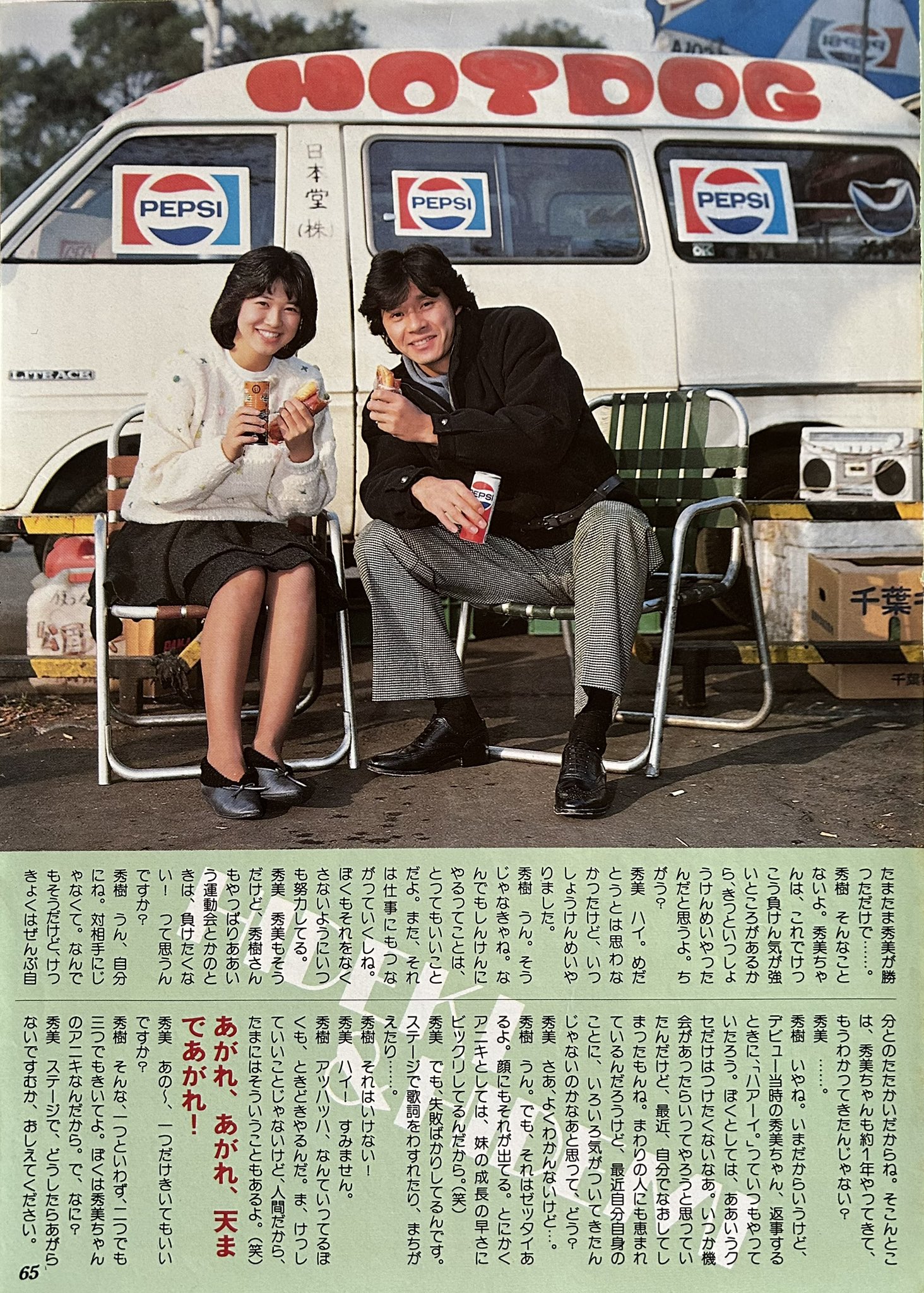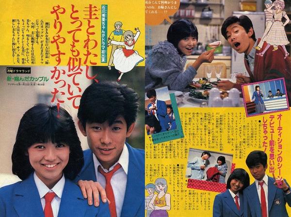 Ishikawa Hidemi started dating with fellow class'82 idol Yakumaru Hirohide, also known as Ya-kun, member of Shibugakitai probably around 1986 or 1987. They got married on June 8, 1990 and she announced her temporary hiatus. But later, she never made a full comeback even after giving birth to her son, basically retired.